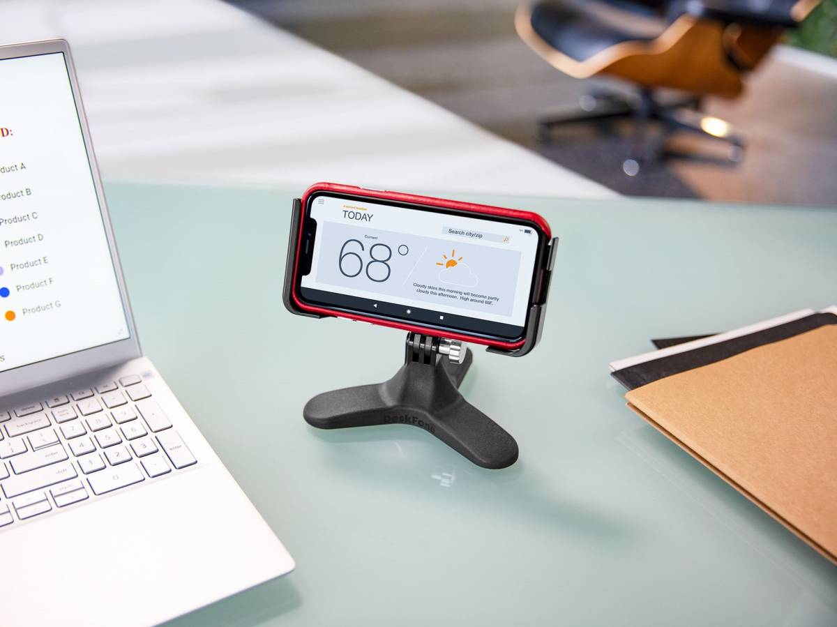 Creamos el soporte para teléfono DeskFone Two View para usuarios que desean ver su teléfono en modo vertical u horizontal.