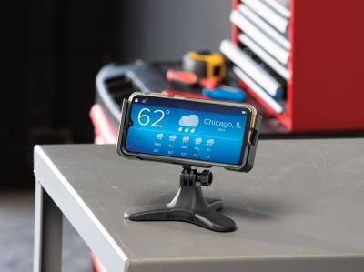 El soporte para teléfono DeskFone Two View se creó para usuarios que deseen tener la opción de ver su teléfono en el soporte, ya sea en modo vertical u horizontal. El soporte para teléfono DeskFone Two View se adapta a teléfonos que miden 2⅞" de ancho cuando están parados verticalmente, y se extiende hasta 6¾" para adaptarse al ángulo de visión horizontal.