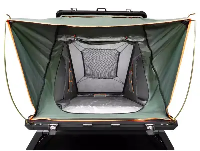 No importa a dónde vayas, RealTruck GoTent es tu segundo hogar. Fabricada con un marco de acero inoxidable y una carcasa protectora de aluminio liviano, GoTent tiene la resistencia para ir a cualquier parte y deja suficiente espacio para el resto de tu equipo para exteriores. Tu campamento estará listo en un tiempo récord gracias a las bisagras de acero inoxidable y los puntales cargados con gas en la carcasa que prácticamente automatizan la instalación. Sube por la escalera telescópica para acceder al espacioso interior iluminado por LED de GoTent, donde una tabla de piso de fibra sintética agrega rigidez estructural y sirve como base para un colchón de espuma de alta densidad de 2 pulgadas de espesor que brinda un soporte satisfactorio y comodidad para dormir para dos. Y cuando estás viajando por tierra, lo único más rebelde que el terreno tiende a ser el clima. Por eso, RealTruck equipó a GoTent para desafiar los elementos con un cuerpo de tela Oxford duradera tratada con un revestimiento impermeable protector diseñado para mantener a raya fácilmente el peor clima. Los canales con ranuras en T integrados en el marco facilitan equipar la GoTent con una variedad de accesorios, como toldos y anexos, lo que la convierte en el núcleo esencial de cada aventura terrestre.