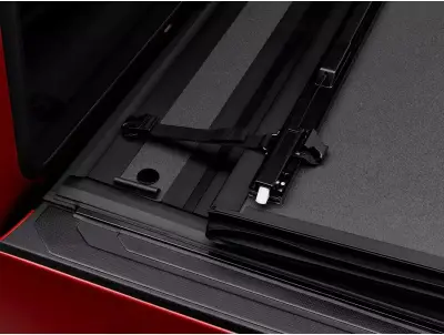 Instalar el BAKFlip MX4 es rápido y fácil gracias al sistema de abrazaderas y las instrucciones incluidos. El manejo de la cubierta es igual de sencillo: baje el portón trasero, suelte el mecanismo de cierre trasero y pliegue la cubierta hacia el mamparo. Si necesita acceder completamente a la caja, pliegue la cubierta hasta que quede al ras de la ventana trasera y apóyela con las varillas de apoyo integradas y los clips rediseñados.