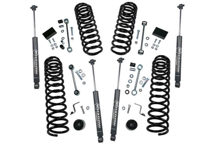 Kit de elevación de 2.5 pulgadas: Jeep Wrangler JL Unlimited 2018 y más nuevo, incluido el Rubicon con bobinas de doble velocidad con extensiones de amortiguador, amortiguadores de sombra, amortiguadores Fox, depósito Fox 2.0 o amortiguadores King.