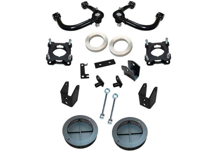 Dale un toque de estilo y mayor altura libre al suelo a tu Toyota Tacoma 2024 con el kit de elevación de 3" de Superlift. Este kit es una solución sencilla para aumentar la altura de tu Tacoma, superando a los kits de nivelación tradicionales. Gracias a sus nuevos brazos de control superiores, ofrece un mejor rendimiento que los kits de elevación convencionales con espaciadores. El kit de 3" también incluye espaciadores para los amortiguadores delanteros y los resortes traseros, soporte para la barra estabilizadora trasera, soportes para reubicar las líneas de freno y toda la tornillería necesaria para una instalación rápida y sencilla.
