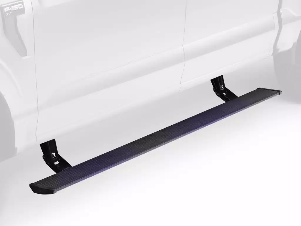 Toda camioneta, Jeep® o SUV puede beneficiarse de un juego de estribos. Sin embargo, solo algunos consumidores disfrutan de su estética. Para quienes prefieren una apariencia limpia y estilizada, AMP Research® ofrece su sistema patentado PowerStep™. Estos estribos retráctiles eléctricos de alta resistencia ofrecen lo mejor de ambos mundos: se despliegan cuando es necesario y se retraen debajo de la carrocería cuando no se usan para preservar la estética y la distancia al suelo.
