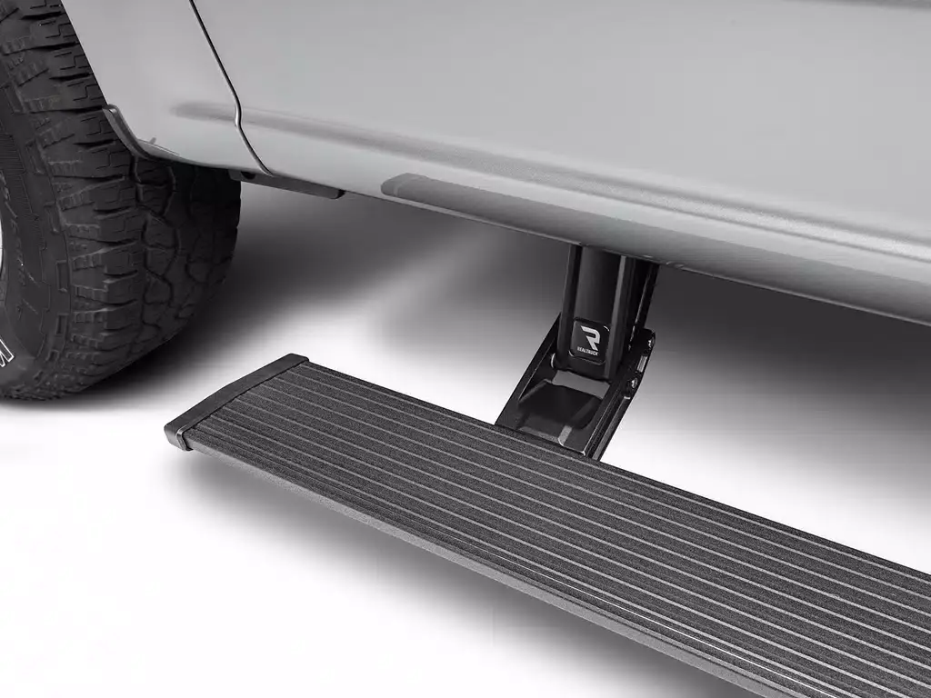 Toda camioneta, Jeep® o SUV puede beneficiarse de un juego de estribos. Sin embargo, solo algunos consumidores disfrutan de su estética. Para quienes prefieren una apariencia limpia y estilizada, AMP Research® ofrece su sistema patentado PowerStep™. Estos estribos retráctiles eléctricos de alta resistencia ofrecen lo mejor de ambos mundos: se despliegan cuando es necesario y se retraen debajo de la carrocería cuando no se usan para preservar la estética y la distancia al suelo.