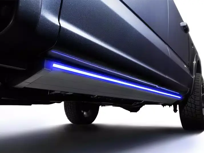 - Además de la iluminación insignia del PowerStep™ Vision, todos los sets PowerStep™ incluyen dos pares de luces LED por lado para iluminar el estribo y el suelo, maximizando así la seguridad al entrar y salir del vehículo. La iluminación del estribo se activa al desplegar los estribos y se apaga al retraerlos.