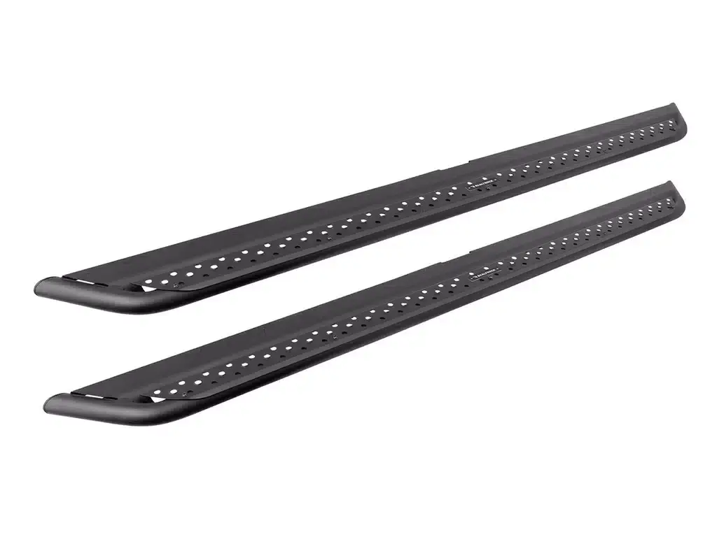 Los escalones deslizantes Go Rhino Dominator DSS están fabricados íntegramente en acero, lo que proporciona una resistencia excepcional a los impactos y la abrasión. Si bien no son tan duraderos como los deslizadores de rocas, los escalones deslizantes ofrecen una excelente protección contra piedras y escombros de la carretera. Para mayor resistencia, Go Rhino ofrece un kit opcional de montaje en el chasis para una máxima protección.