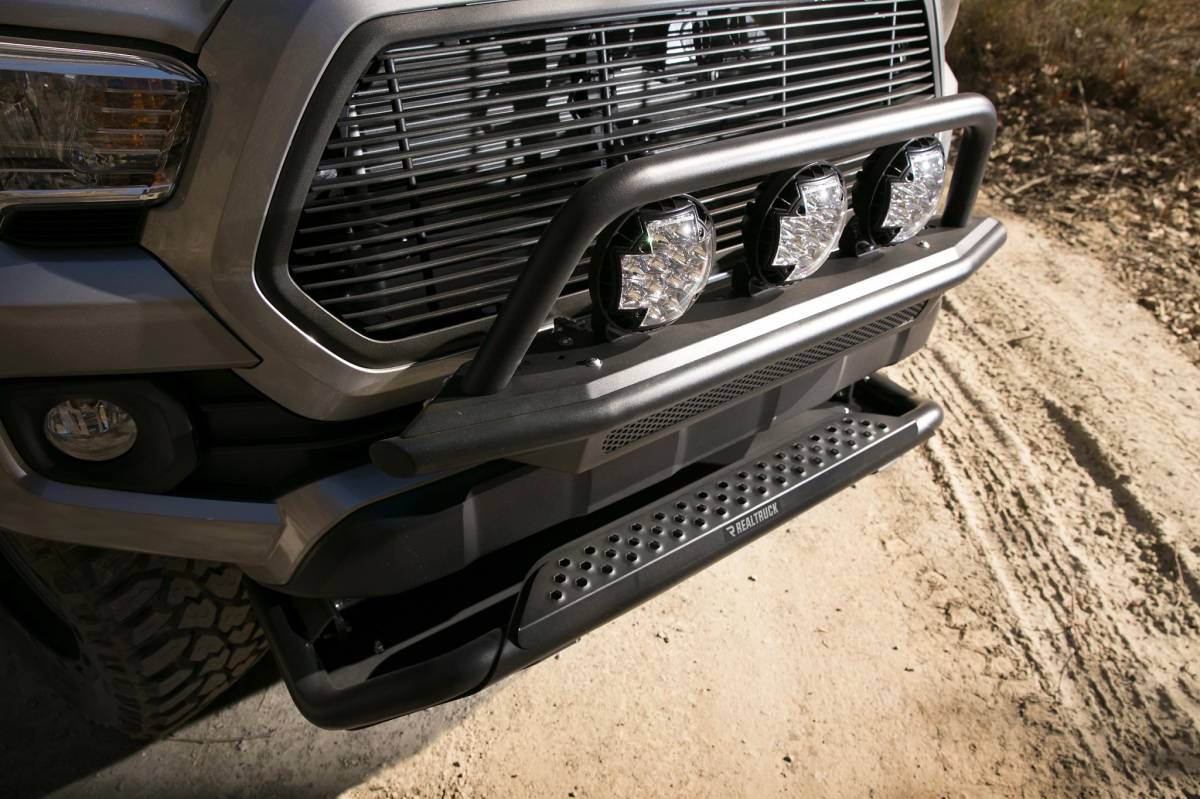 La defensa RC3 LR de Realtruck es una combinación única de placa protectora, protección contra rocas y salpicaduras, escalón patentado antideslizante y barra de luz empotrada, todo mientras brinda una excelente protección frontal para su camioneta o SUV.