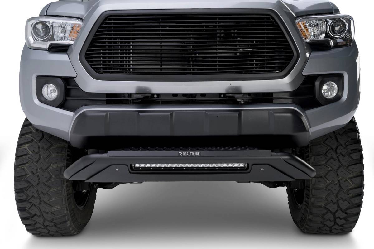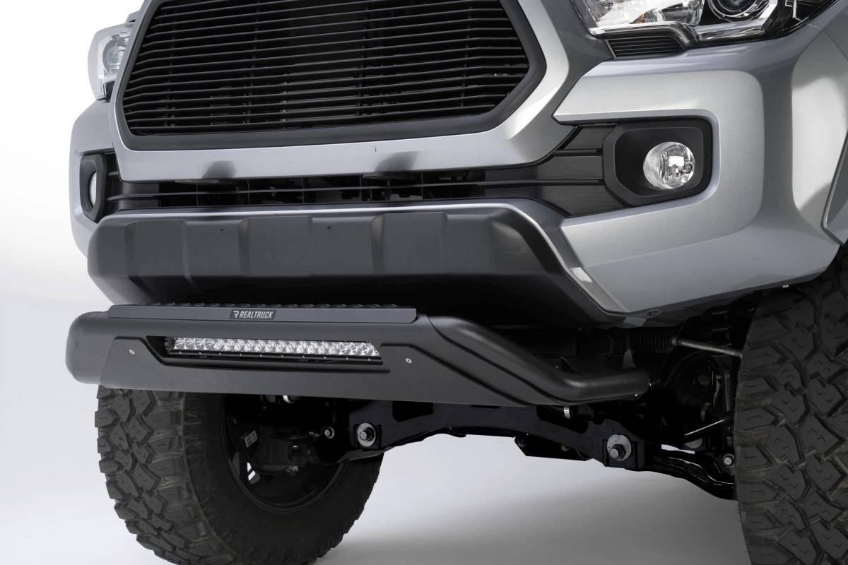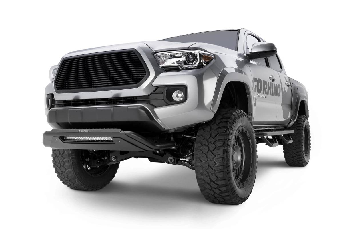 La defensa RC3 LR de Go Rhino es una combinación única de placa protectora, protección contra rocas y salpicaduras, escalón patentado antideslizante y barra de luz empotrada, todo mientras brinda una excelente protección frontal para su camioneta o SUV.