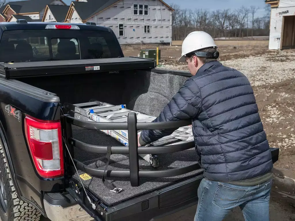 El BedXTender HD Sport se monta en la parte trasera de la caja de tu camioneta para crear un espacio cerrado alrededor de la puerta trasera bajada. Es ideal para transportar cargas largas, como motos de cross, cuatrimotos y equipo para acampar los fines de semana. También se puede plegar hacia la caja para guardarlo fácilmente. Con la puerta trasera cerrada, el extensor de caja funciona como separador de carga y un práctico espacio de almacenamiento.